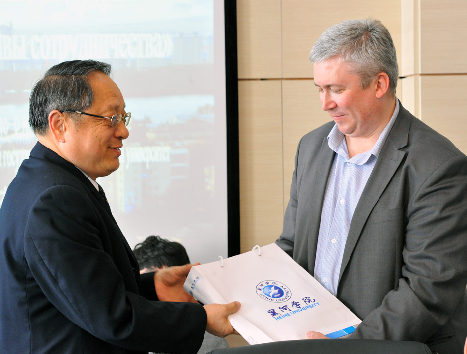 中俄高校领导互换礼物,共同期望,缔造两校教育交流和合作的新辉煌
