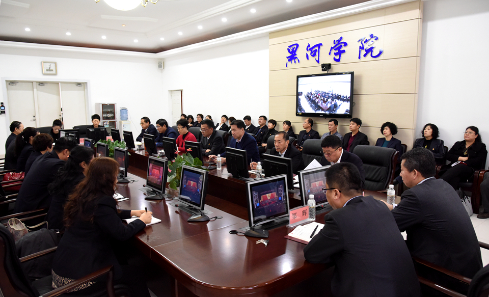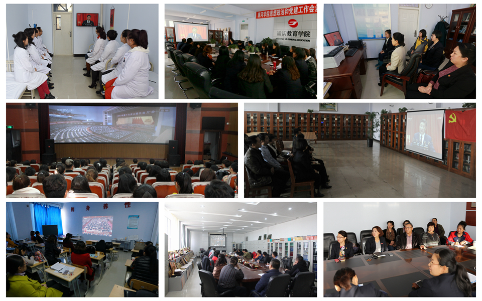 明德楼二楼会议室,校党政领导班子成员、各党总支书记、各部门负责人和民主党派代表集体收看了开幕会。校领导们在聆听报告的同时,就习近平总书记报告中的相关内容认真地做着记录,并就相关问题展开讨论。大家一致认为,习近平同志的报告鼓舞人心,催人奋进,将结合实际深入学习贯彻党的十九大精神,为加快高等教育的发展作出新的更大贡献。