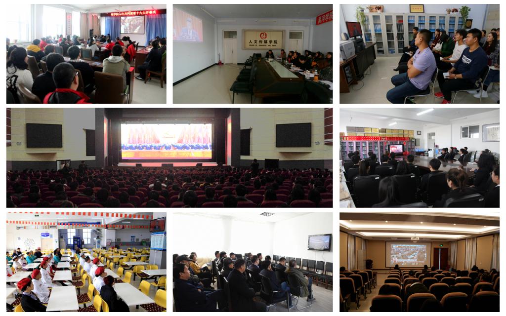 各学院会议室、教室、办公室坐满了观看开幕盛况的老师和同学。马克思主义学院教师李立菊表示,要在做好本职工作的基础上,加强对党的十九大精神的学习和研究,促进十九大精神进课堂、进教材、进学生头脑。2017级汉语国际教育专业学生张亚隆表示,非常荣幸自己在入校第一学期就看到十九大的召开,希望四年的学习能让自己带着骄傲与自豪走出国门从事汉语国际教育工作,将中华优秀传统文化传播到世界每一个角落。