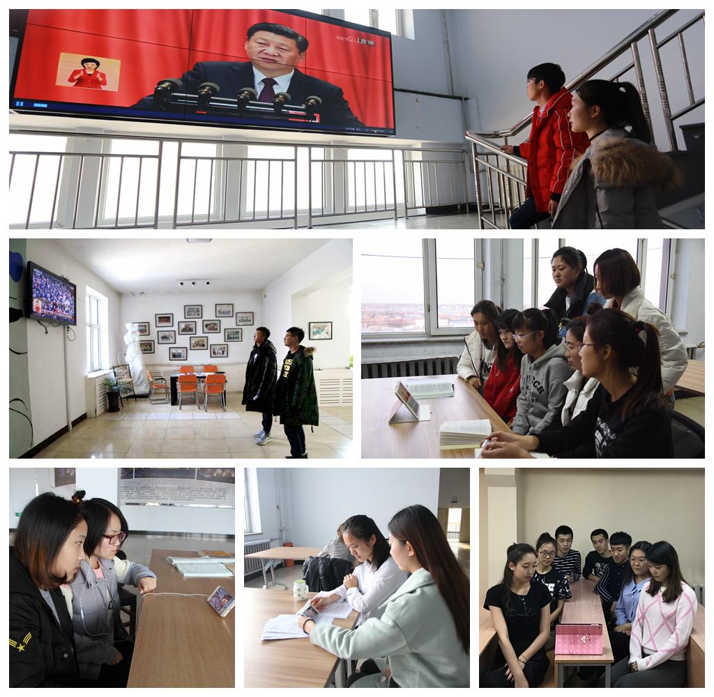 “赶紧的,到时间了,快上网看十九大呀!”理学院即将参加研究生考试的郑琦和庞诗宇催促着一起奋战考研的同学用手机和平板电脑观看十九大开幕盛况。从会场气氛,到参会代表,再到总书记的报告,现场直播里的每一个镜头都让大家兴奋不已。她们在感受国家发展强盛的同时,也对自己的未来充满了信心。