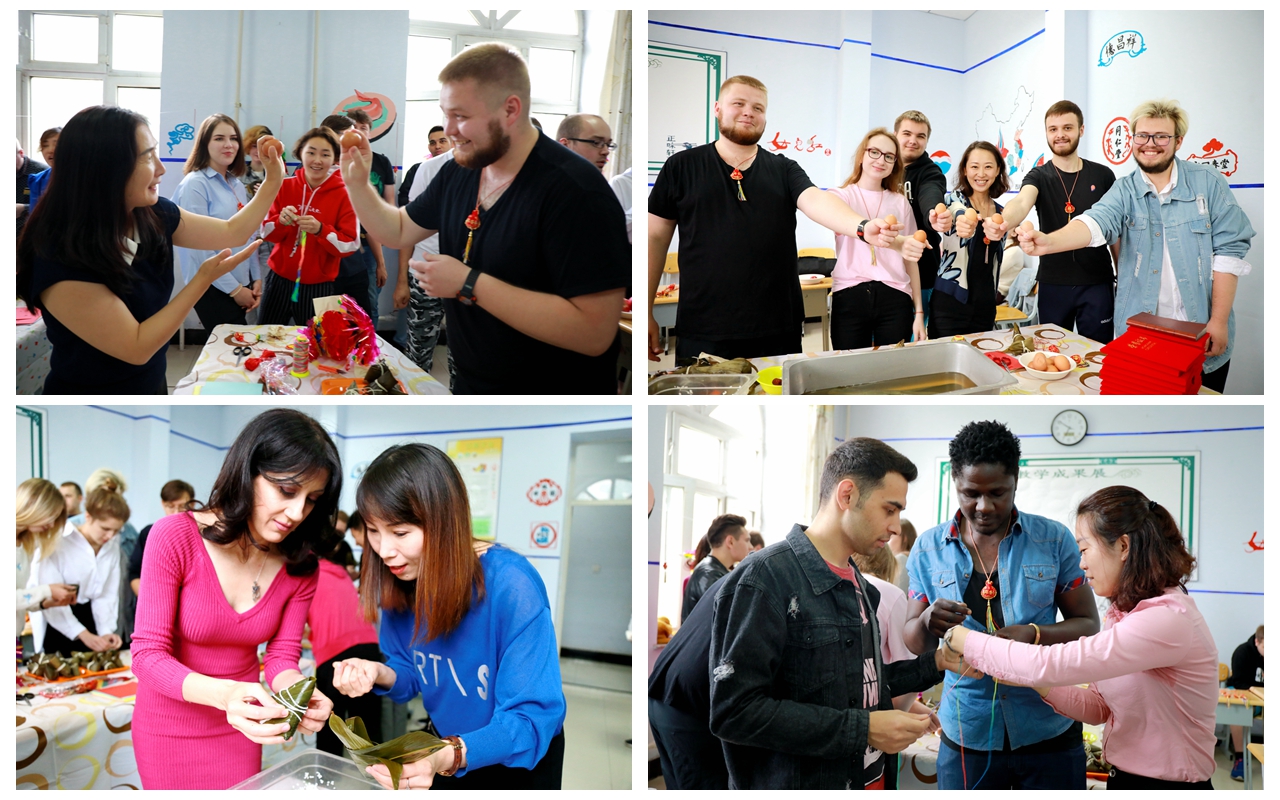 活动中,师生们还互相佩戴香包、编织五彩绳、撞鸡蛋,体验端午文化,既收获了快乐,又加深了对中国传统文化的理解。“学习一门语言除了解文识字,最难的还是对一个国家文化的了解。”国际教育学院党总支书记郑羽介绍说,每逢清明、端午、中秋等中国传统节日,学校都会组织祭扫烈士墓、包粽子、品月饼等活动,这种互动性的体验活动更容易被留学生所接受,他们会把在中国生活的经历和体验带回自己的国家,也让中华文化更多地向海外传播。