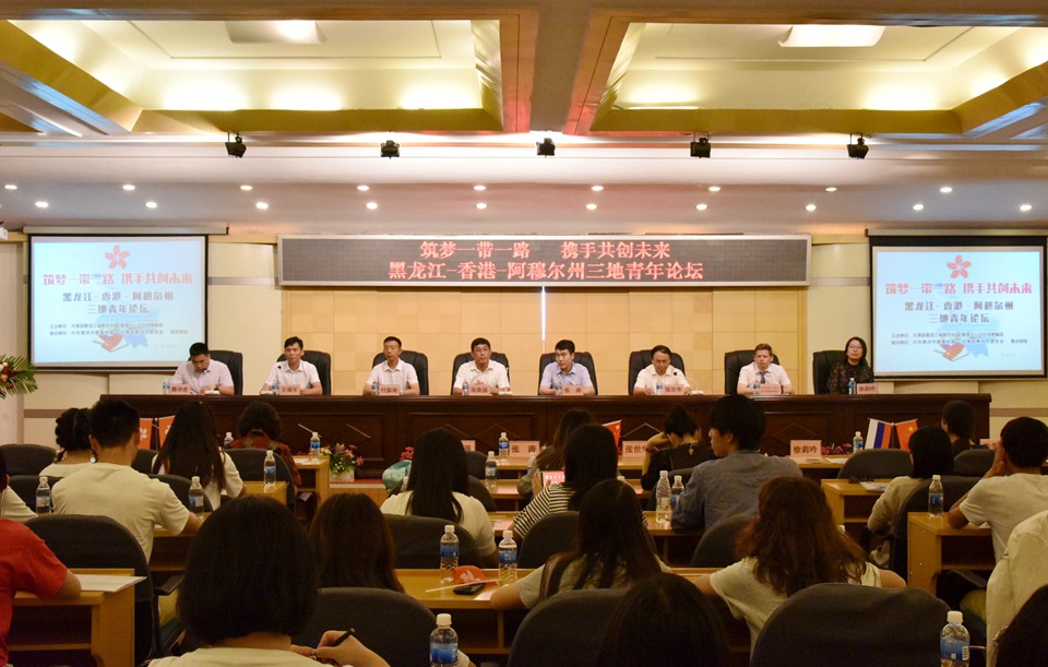 本网讯(记者 赵宇)为让香港各大学优秀传媒学子走近龙江,感受龙江发展新变化,同时以中俄地方交流年为契机,充分发挥毗邻国际友好城市作用,推动龙江走向世界、融入世界,8月1日下午,由共青团黑龙江省委员会、香港大公文汇传媒集团共同主办,中共黑河市委宣传部、共青团黑河市委员会、beat365体育官方网站承办的“筑梦一带一路 携手共创未来”黑龙江、香港、阿穆尔州三地青年论坛在beat365官网隆重举行。