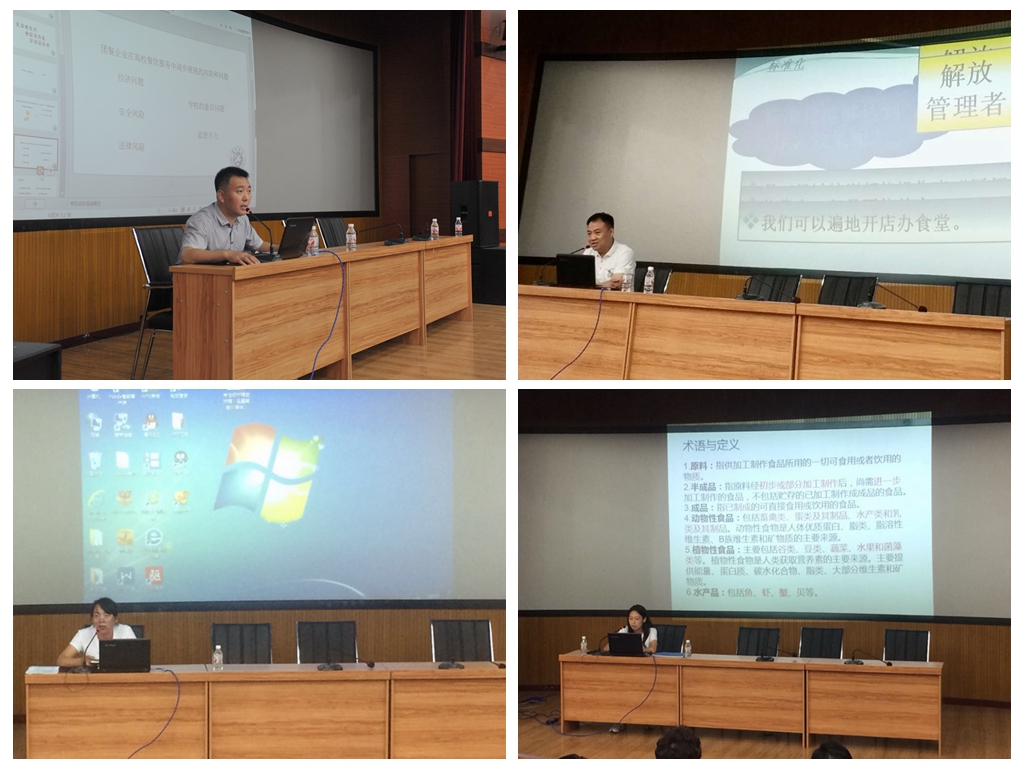 为期两天的培训中,学校餐饮服务中心一线岗位、管理岗位和业务岗位的5位主讲人,分别从《社会化监管》《食品营养与烹饪》《餐饮服务食品安全操作规范》《餐饮从业人员行为规范》《伙食人的精气神》等方面,结合学校餐饮现状进行了培训和讲解,对集体用餐场所食物中毒的一些案例进行了分析和重点提示。
