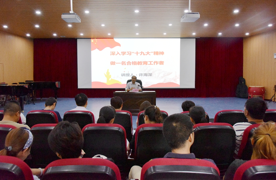 本网讯(记者 赵宇 特约记者 刁幕鹏)8月16日下午,副校长许海深为分管和联系单位党员同志作“深入学习‘十九大’精神 做一名合格教育工作者”专题党课辅导。教务处、发展规划处、现代教育技术中心、音乐学院、继续教育学院30余名党员聆听党课。