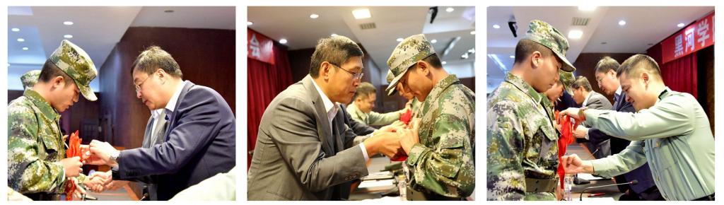 爱辉区武装部部长李伟明上校宣读beat365体育官方网站2018年大学生应征入伍名单及分配方向。2017级计算机与信息工程学院徐浩霖代表应征入伍学生感谢学校的培养,并表示在今后的部队生活中将勤学苦练,不畏艰难,服从命令,把自己锻炼为一名优秀的子弟兵,为国家的和平与安宁扛好枪,站好岗。2015级外国语学院退役复学学生李雯雯饱含深情地回忆了自己两年难忘的军旅生涯,并与14名即将入伍的学弟学妹分享了宝贵经验。