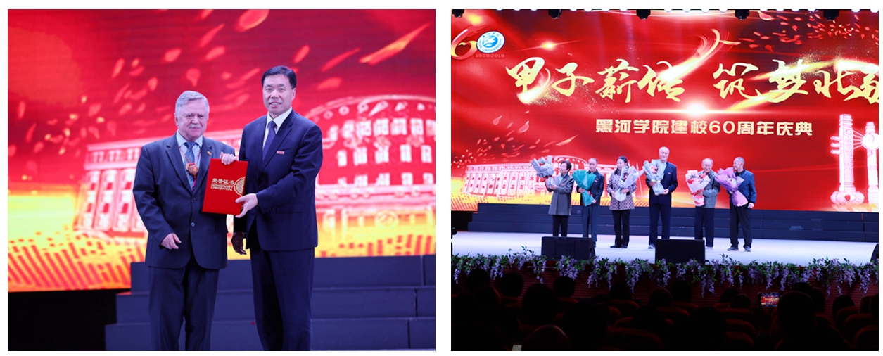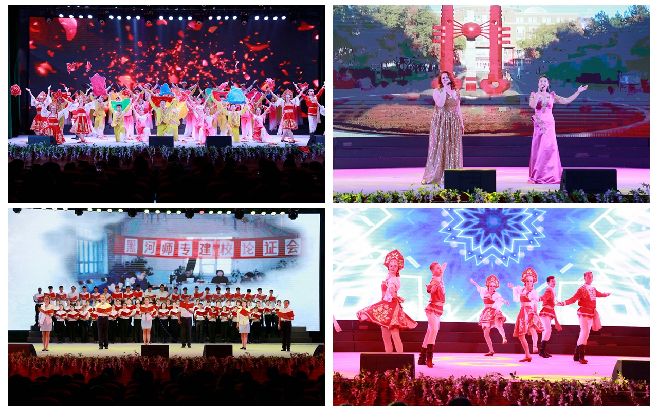 黑河市领导秦恩亭、马里、蔺波,哈尔滨商业大学党委书记孙先民、哈尔滨体育学院党委书记曹百瑛、齐齐哈尔大学校长陈桂芝、绥化学院校长张凤武、黑龙江广播电视大学校长吕巧凤及国内兄弟院校的领导、俄罗斯合作院校校长到会祝贺;已经退休的原党委书记姜义男、曲伟建,校长马子龙、纪委书记孙丽莉、党委副书记李廷栋,曾经在校工作的原副校长、黑龙江工程学院副校长宋立权与校党政领导班子、历届校友和师生代表、各界来宾千余人参加庆典活动。20余万网友通过网易直播、微博直播同步收看庆典大会。