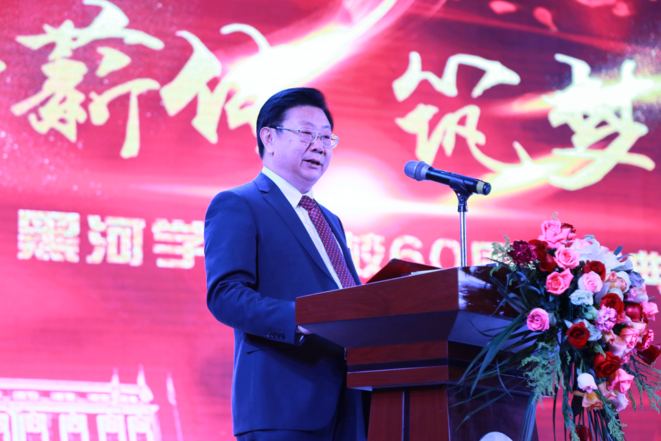 党委书记王刚致开幕辞。他指出,多年来,学校积极适应我省和黑河地区经济社会发展的需要,立足龙江发展建设,根据高等教育发展规律和学校的实际,不断提升应用型人才培养质量,正向着国内知名的应用型、国际化、地方综合性大学的办学目标阔步前行。他表示,在各级政府、领导的大力支持下,在广大校友及社会各界的关心关怀下,全校师生一定能够以60周年校庆为契机,进一步解放思想、求真务实、开拓创新,以全国教育大会和新时代全国高等学校本科教育工作会议精神为指引,坚持“四个服务”的办学方向,为龙江经济社会发展作出新的更大贡献。