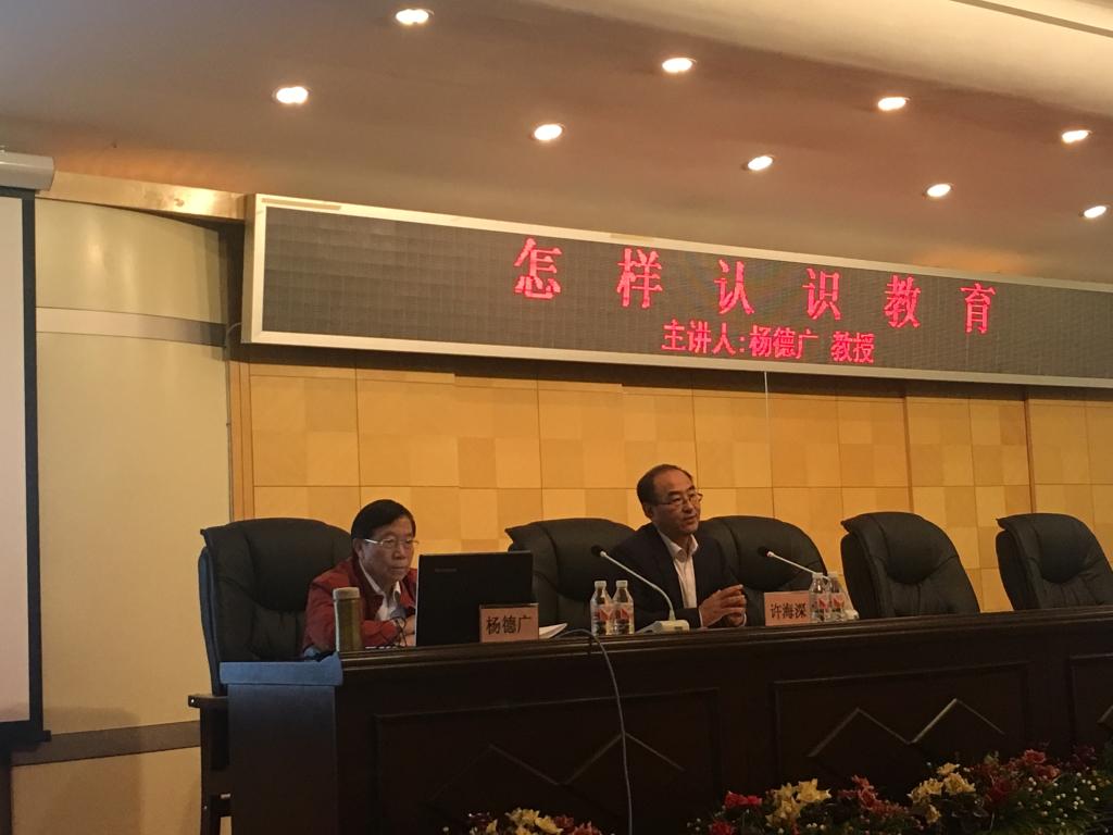 9月26日下午,杨德广教授在明德楼五楼多功能厅作题为“怎么认识教育”专题讲座,他以“无为何入世、入世有所为”为座佑铭,身体力行,将教育和慈善践行在实际行动之中,为我们树立了优秀的师表楷模。