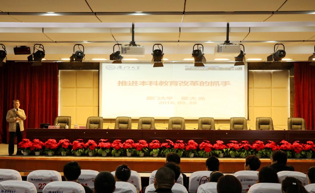 9月28日下午,邬大光教授在求知楼报告厅作题为“推进本科教育改革的抓手”专题讲座,以国内本科教育现状为切入点,通过一个个高校案例分析国内外本科教育方式的差异性,向师生们强调本科人才培养对国家教育事业的重要性。