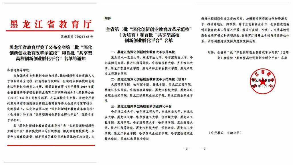 本网讯(特约记者 潘潇)3月17日,黑龙江省教育厅发布首批“共享型高校创新创业孵化平台”名单,beat365官网名列榜单。