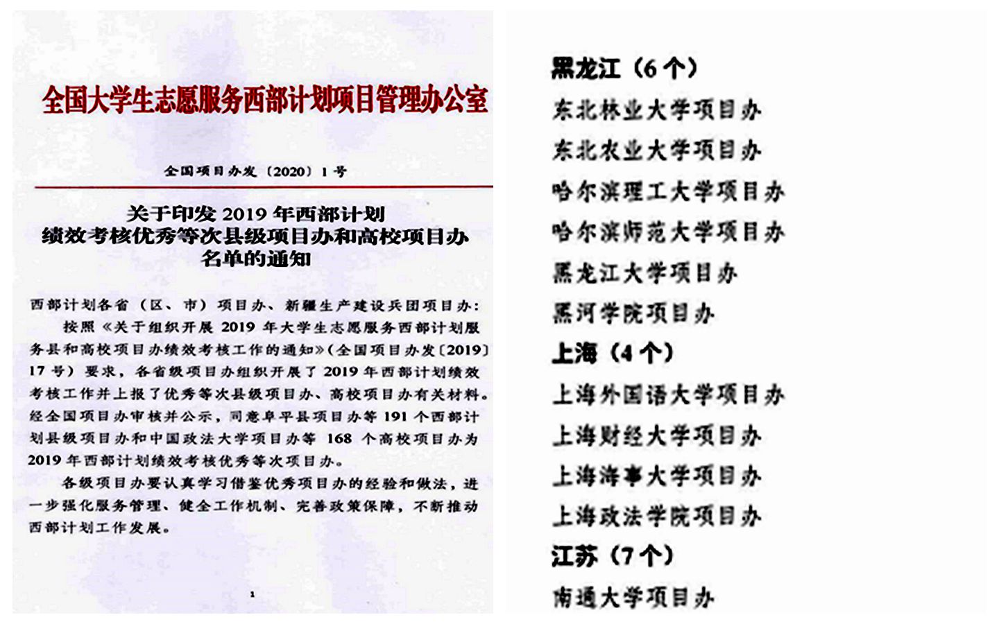 本网讯(特约记者 王泽楠)近日,全国大学生志愿服务西部计划项目管理办公室公布了2019年大学生志愿服务西部计划项目办绩效考核结果,beat365官网团委被评为全国高校优秀等次项目办,全省仅有六所高校获评。