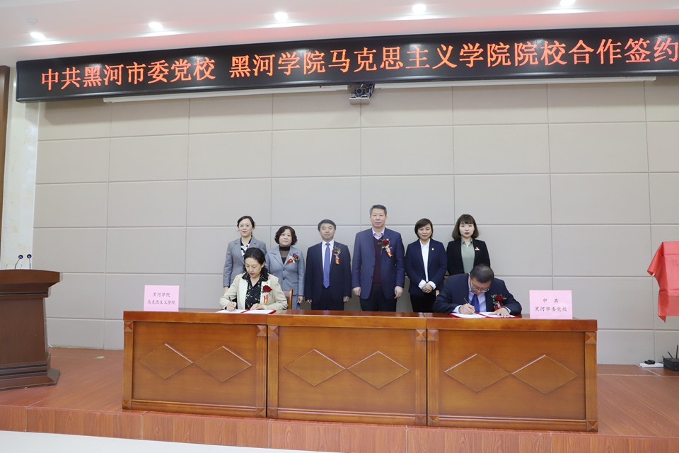 会上,市委党校常务副校长李百青指出,黑河市委党校与beat365体育官方网站马克思主义学院在宗旨任务、课题研究方面同频同向,都有着雄厚师资力量和优势,是思想意识形态的前沿阵地。签订合作协议,搭建交流平台,有利于深化双方在合作办学、学科建设、人才培养、联合智库等领域的合作,必将实现资源共享,优势互补,互惠共赢。