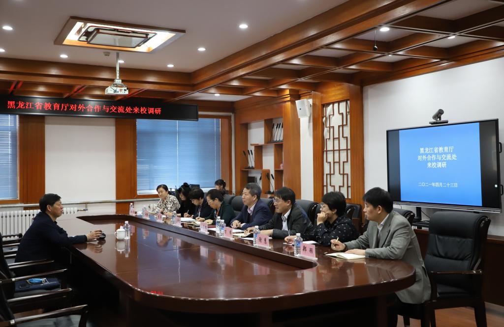 副校长丛喜权首先感谢教育厅对外合作与交流处对学校相关工作的关心和支持,他围绕外语学科建设情况及俄语专业发展的历史脉络,主要介绍了俄语专业在师资团队、专业建设、服务社会等方面取得的成绩。各部门相关负责人结合本职工作,就俄语专业招生形势、学生管理、教学运行及孔子学院汉语教学情况、校地共建黑龙江自贸试验区黑河片区情况进行汇报交流。