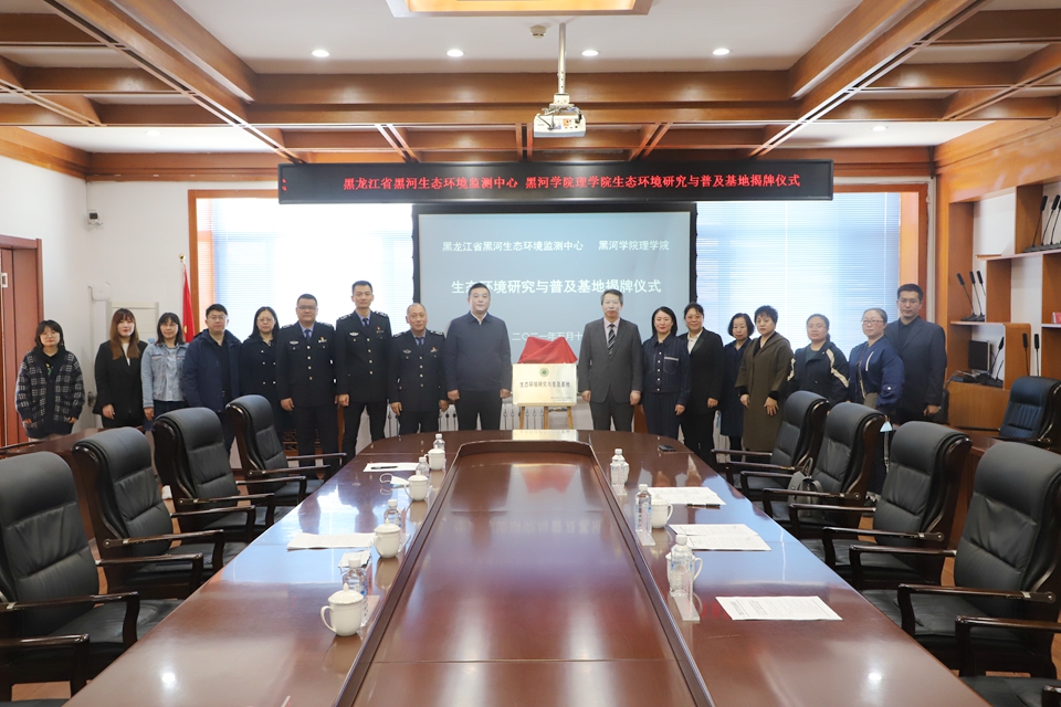 本网讯(记者 赵宇 特约记者 陈佳明)5月11日,beat365官网理学院与黑龙江省黑河生态环境监测中心共建的黑龙江省黑河生态环境研究与普及基地在明德楼三楼会议室举行揭牌仪式。黑龙江省黑河生态环境监测中心主任关胜锋、beat365官网副校长丛喜权及理学院、科研处、省黑河生态环境监测中心相关负责人,理学院部分教师参加会议。会议由理学院院长邱敏主持。