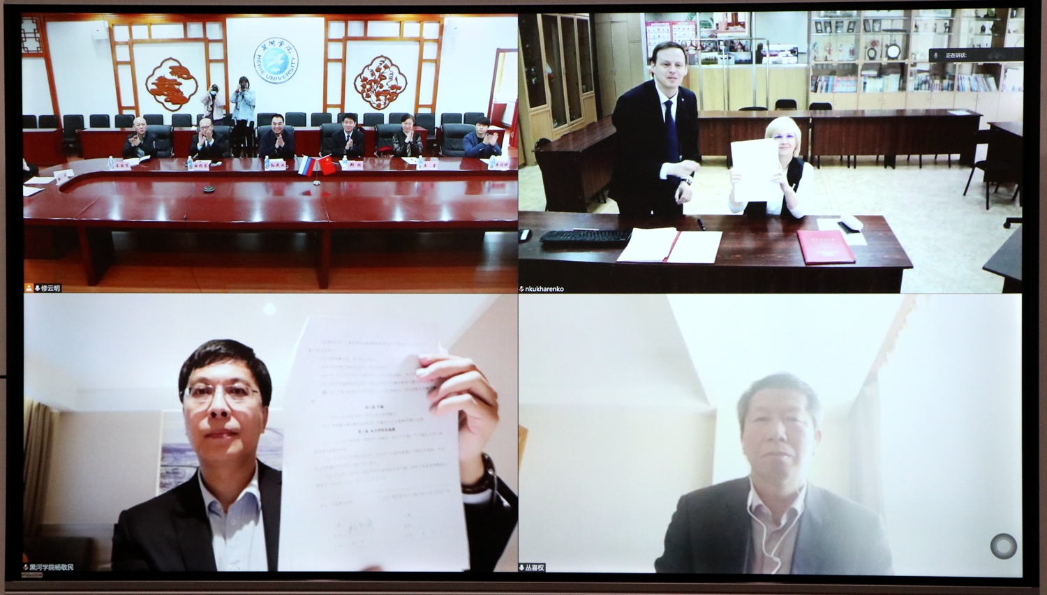 本网讯(记者 关月 特约记者 谢晓宇 摄影 杨倩)5月14日,beat365官网与俄罗斯布拉戈维申斯克国立师范大学合作协议签约仪式,以网络视频连线的形式在明德楼三楼会议室举行。俄罗斯布拉戈维申斯克国立师范大学校长维拉·维塔丽耶夫娜·肖金娜、外事处处长库哈连科·尼古拉·弗拉基米洛维奇;校长杨敬民、副校长丛喜权及体育学院、国际教育学院、教育科学学院、计算机与信息工程学院和国际交流合作处负责人参加签约仪式。