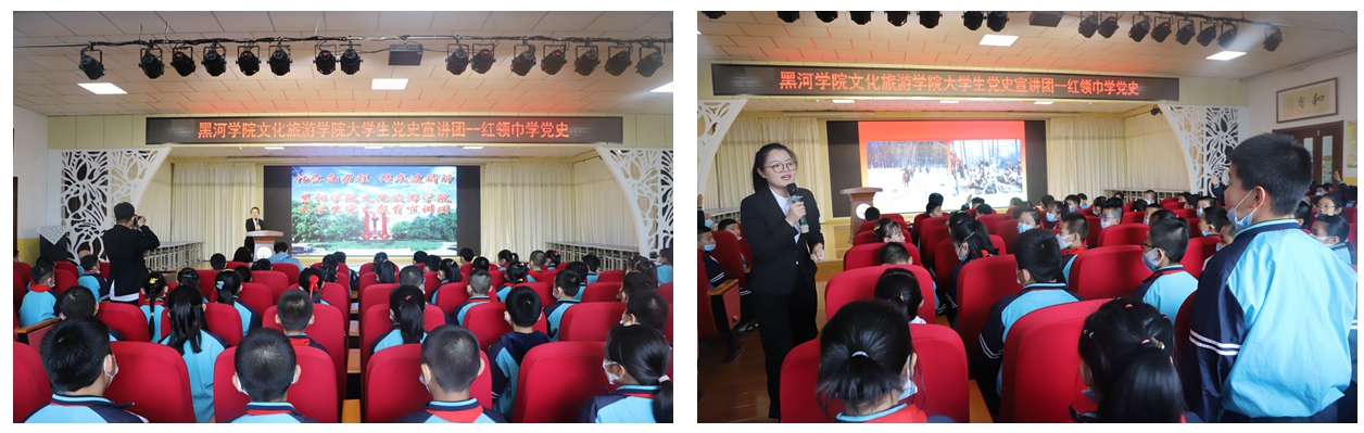百年党史记载着中国共产党从诞生到发展、从发展到壮大的奋斗历程,凝聚着党领导人民进行革命、建设、改革的集体智慧,是新时代大学生们最好的教科书、营养剂。带队教师、文化旅游学院张薇说:“百年党史是有温度的,希望能通过学生们的宣讲,将党史中的深刻理论用浅显易懂的故事形式讲述出来,让党史学习教育更加鲜活生动,也更加深入人心。”“在这场严酷的全民抗日战争中,东北抗日联军在黑河广袤大地上英勇顽强、不屈不挠的斗争,为黑河地区留下了丰富的红色遗迹和红色故事。如今,这些红色资源成为了北疆师生开展党史学习教育最生动、最鲜活的教材。”历史系主任杨正阳介绍道。