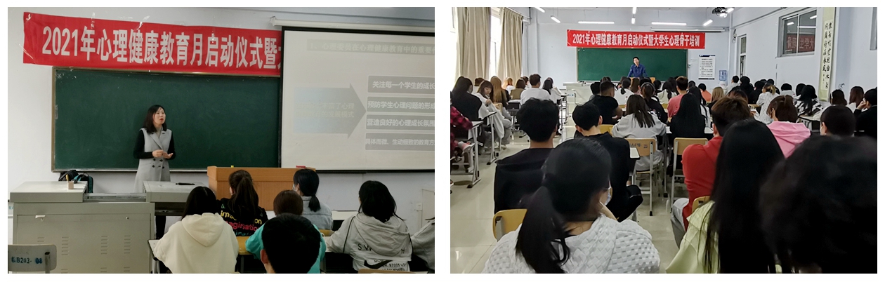 本次培训分别以“大学生常见心理问题”“心理委员的职责”为题,主讲教师王希顺、刘恋通过案例分析为心理委员讲解了常见心理问题的识别,心理委员工作定位、职责等内容,并要求心理委员们关注心理和行为异常的同学,做到早发现、早预防、早干预的。