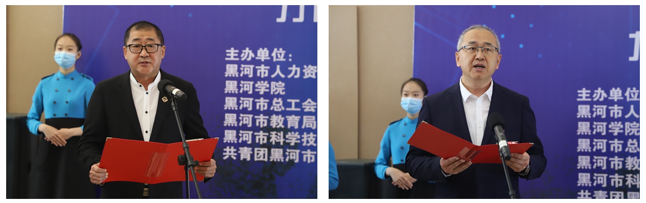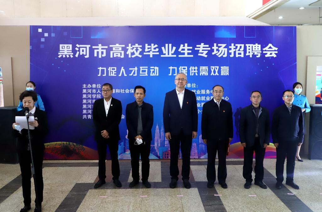 黑河市中小企业协会常务副会长兼秘书长李海在发言中指出了中小企业协会的桥梁纽带作用,体现了各用人单位对企业招贤纳才和帮助毕业生寻找就业岗位的高度重视;黑河市人力资源和社会保障局党组成员市就业服务中心主任谢晓奇,明确了此次招聘会的工作要求,强调了推进高校毕业生就业创业的重要意义,希望通过今天的招聘会,用人单位和毕业生能够有效对接。
