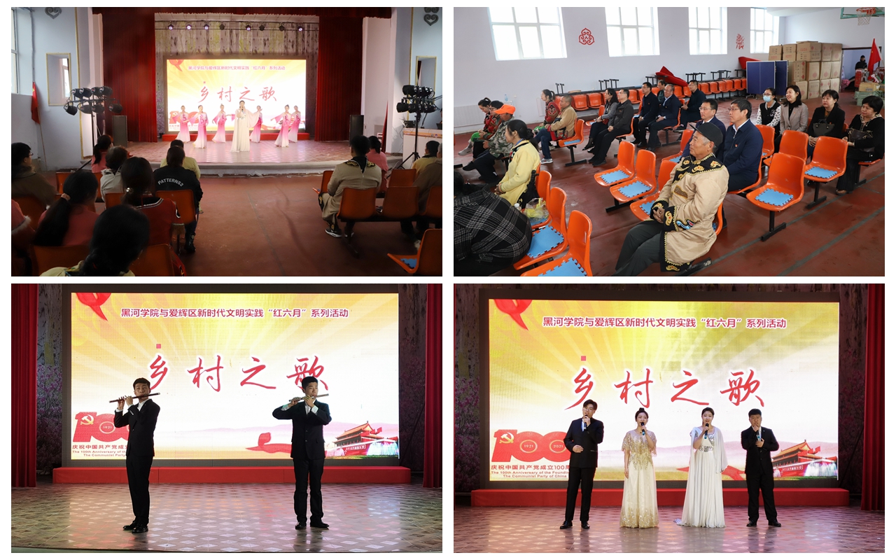 作为beat365体育官方网站与爱辉区联合举办“红六月”系列活动之一,本次活动旨在宣传党的百年历史,巩固和升华理想信念,进一步凝聚建设美丽边疆的强大精神动力,以达到“学党史、悟思想、办实事、开新局”的目的。文艺演出在歌伴舞《兰》的精彩的表演中拉开序幕,京剧《梨花颂》、马头琴独奏《黑骏马》、竹笛重奏《草原小姐妹》、歌曲《等着我,亲爱的人》 等节目轮番上演。演员们用动听的歌声,讴歌党、讴歌祖国、讴歌人民,观看的乡民不时跟着音乐一起哼唱,现场气氛热烈。演出在四重唱《不忘初心》中落下帷幕,整场演出历时近一个小时,受到广大乡民的一致好评。