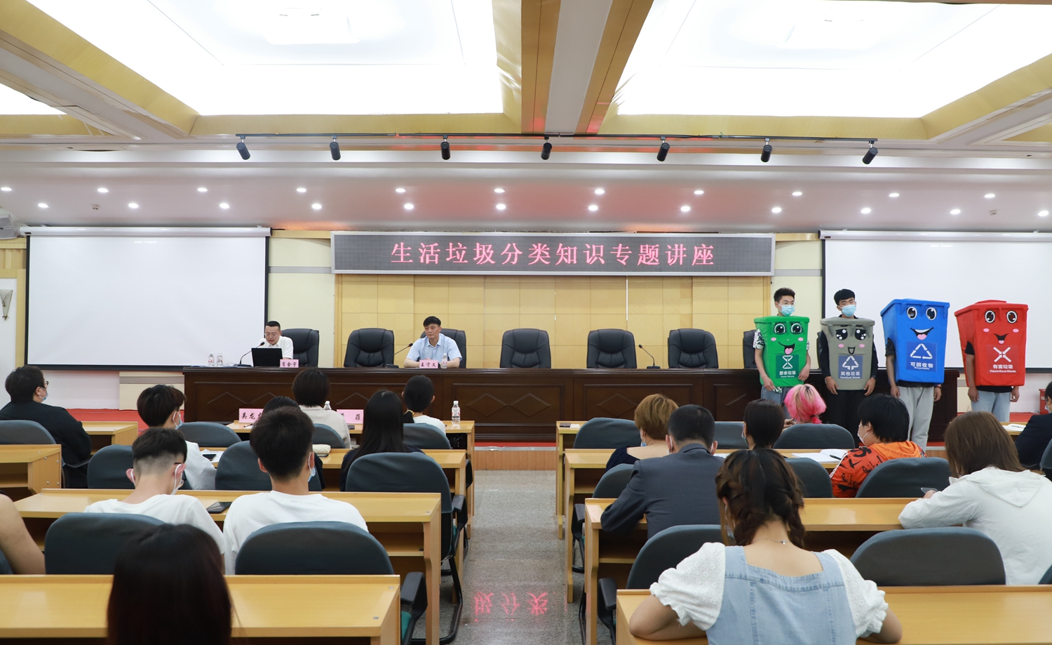 本网讯(记者 关月 摄影 周春晓 陈慧)为持续推进beat365官网第33个爱国卫生活动月暨beat365体育官方网站校园生活垃圾分类工作的有序有效开展,引导全校师生养成良好的垃圾分类习惯,6月9日,后勤管理处邀请黑河市生活垃圾分类办公室肖金宇作《开展生活垃圾分类 共建美丽文明黑河》专题讲座。各二级学院学团办主任、学生代表,学生公寓楼长、保洁经理、保洁员,社会化企业、餐饮中心代表参加讲座。