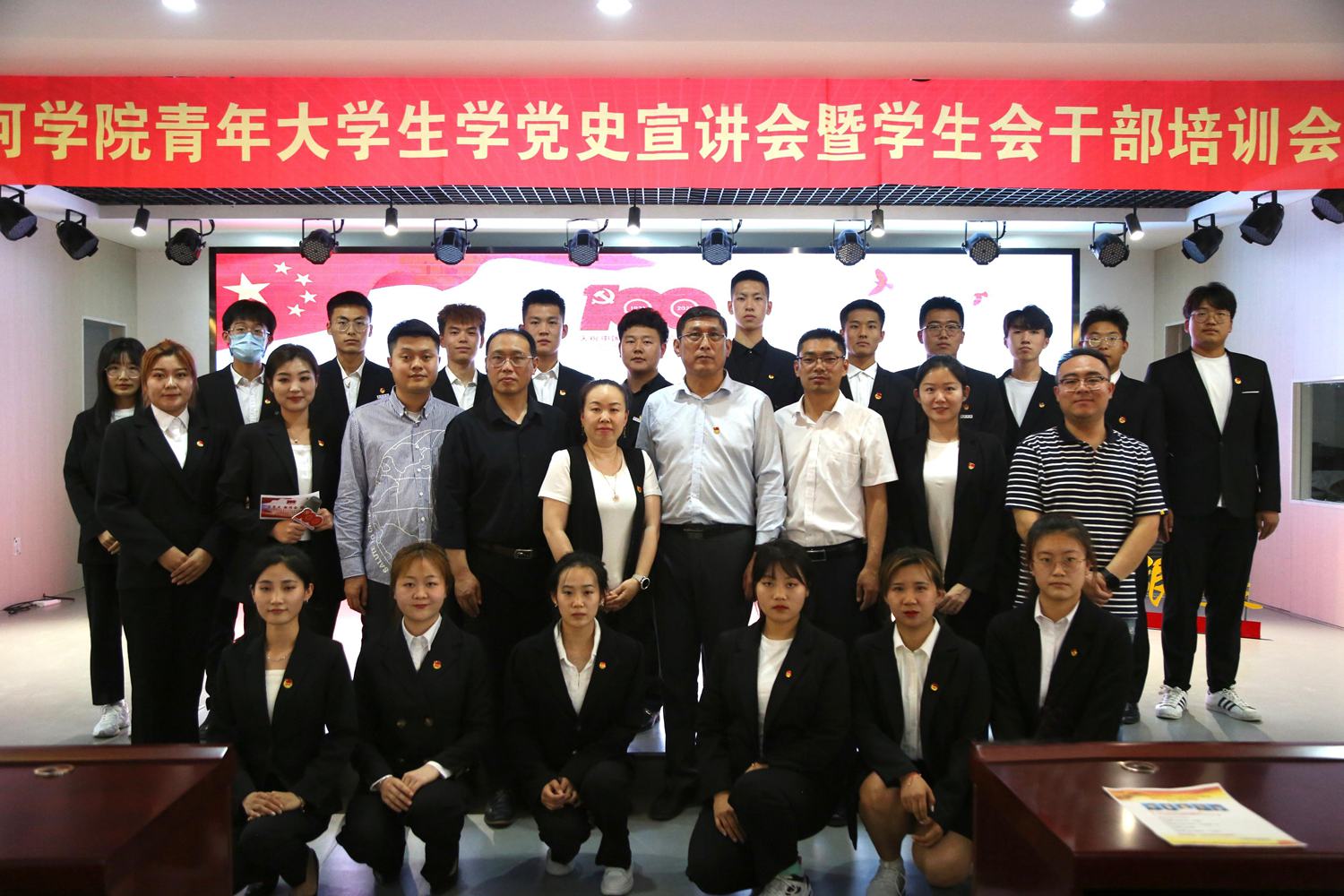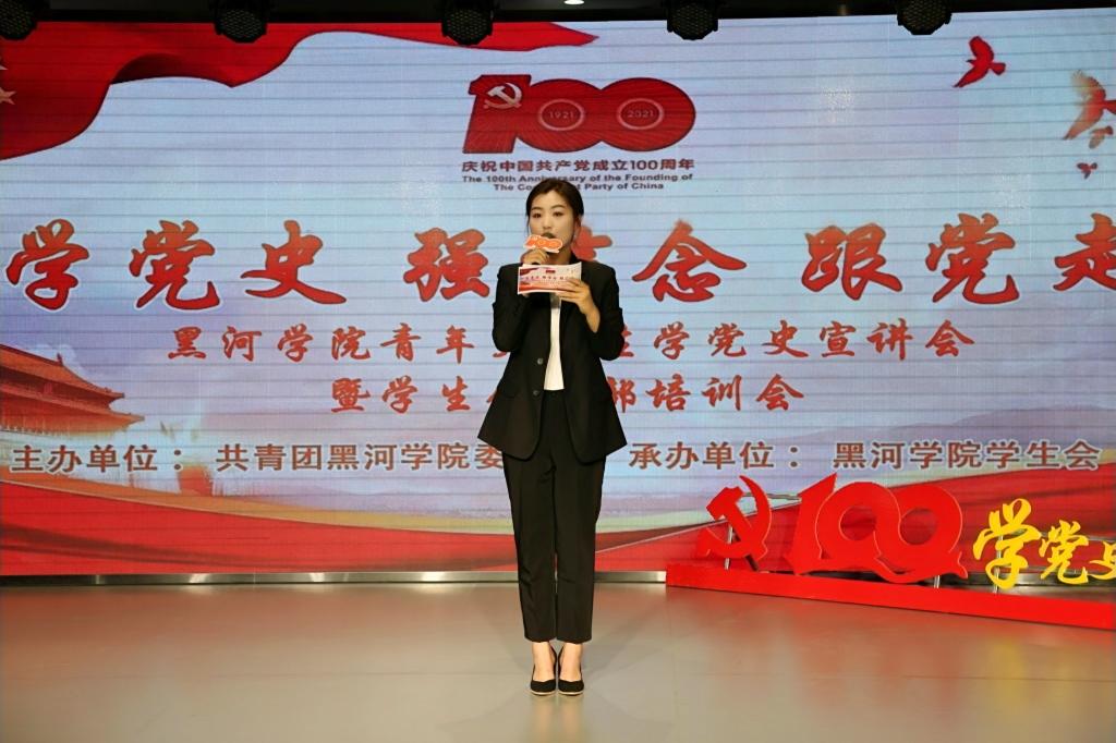 本网讯 (特约记者 肖尧 摄影 肖燕)为进一步将共青团党史学习教育再深入、再巩固、再提高,6月11日下午,由校团委主办、校学生会承办的“学党史 强信念 跟党走”青年大学生学党史宣讲会暨学生会干部培训会在中俄青创实践基地举行。学校党委副书记张焕强出席宣讲会并进行点评,组织部、宣传统战部、校团委负责人同校院学生会骨干近200人参加宣讲培训会。