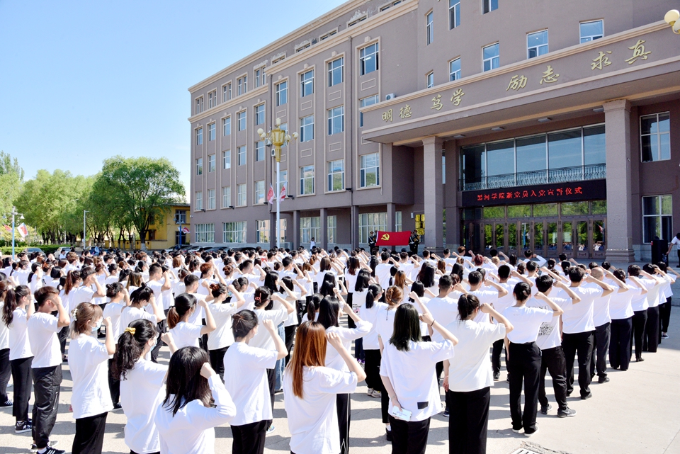 党委副书记、校长杨敬民向全体新党员同志们表示热烈祝贺,向为学校建设发展作出突出贡献的老党员们表示衷心感谢。他对党员同志,特别是全体新党员提出三点希望:一要深化党史学习,在新时代勇担新使命,不断从党史学习中激发信仰、获得启发、汲取力量,提高政治判断力、政治领悟力、政治执行力,时刻以一名优秀党员的标准来严格要求自己,让自身价值在为国家、为人民的奉献中焕发出绚丽光彩。二要提升党性修养,在新时代铸造新品格,要增强“四个意识”,坚定“四个自信”,做到“两个维护”,自觉用中华优秀传统文化、革命文化、社会主义先进文化培根铸魂、启智润心,切实增强做中国人的志气、骨气、底气,要加强道德修养,明辨是非曲直,增强自我定力,牢记入党初心,矢志追求更有高度、更有境界、更有品味的人生。三要强化责任担当,在新时代成就新作为,要始终秉承学院精神,把握新发展阶段、贯彻新发展理念、融入新发展格局,不断加强党对学校工作的全面领导,全面落实立德树人根本任务,以推动高质量发展为主题、思政铸魂为主线、改革创新为动力、服务地方经济社会发展和黑河自贸片区建设为切入点、坚持扬优势、补短板、强弱项、显特色,提高教育治理能力和水平,围绕做好“12368+10”系列工作,为学校“十四五”教育事业改革发展开好局、起好步,在把beat365体育官方网站建设成为特色鲜明的高水平应用型大学的征途中展现新作为,以优异成绩迎接中国共产党成立100周年。