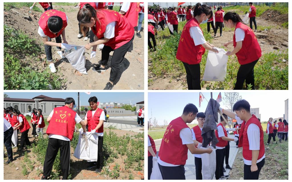 宣誓仪式后,新党员参加了党员志愿服务活动,对新校门及景观大道周边垃圾进行了清扫。