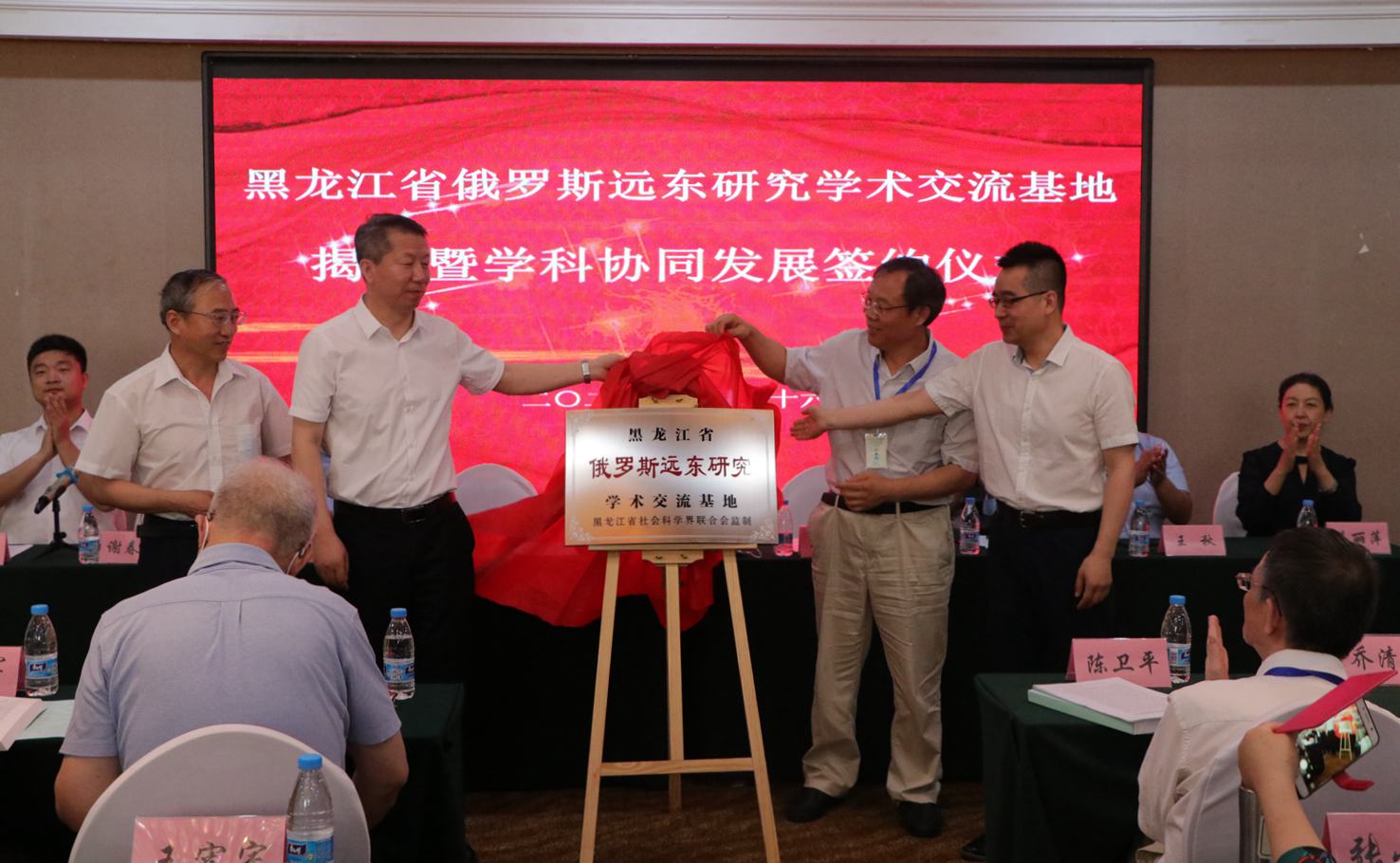 会上,黑龙江省社科联学会部宁文元宣读了黑龙江省俄罗斯远东研究学术交流基地批复文件;黑龙江省俄罗斯远东研究学术交流基地负责人、远东研究院院长谢春河宣读了协作单位贺信。
