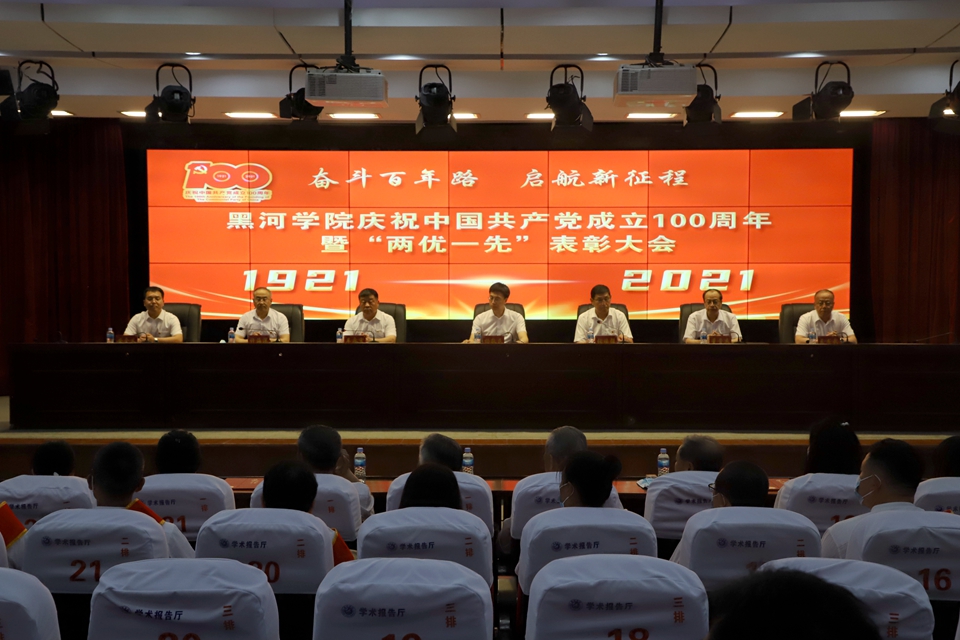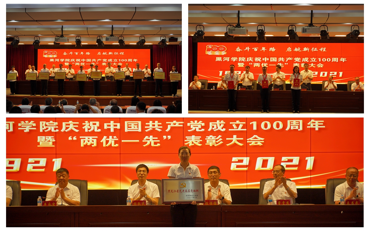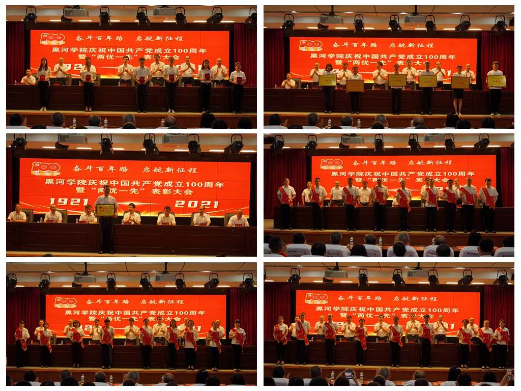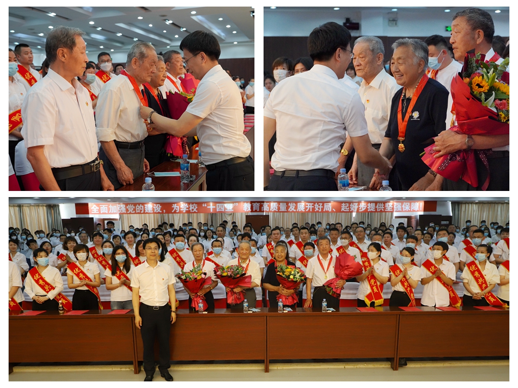 大会开始,全场起立,奏唱国歌,歌声嘹亮,催人奋进。近年来,学校各级党组织和广大党员以习近平新时代中国特色社会主义思想为指导,深入学习贯彻党的十九大和十九届历次全会精神,坚持党对学校工作的全面领导,充分发挥基层党组织战斗堡垒作用和党员先锋模范作用,涌现出了一大批优秀个人和先进集体。会上,与会领导宣读了“‘光荣在党50年’纪念章获得者名单”、“关于表彰优秀共产党员、优秀党务工作者和先进基层党组织的决定”、“关于表彰庆祝中国共产党成立100周年系列活动的决定”,并向获奖单位及个人颁发了奖牌和荣誉证书。