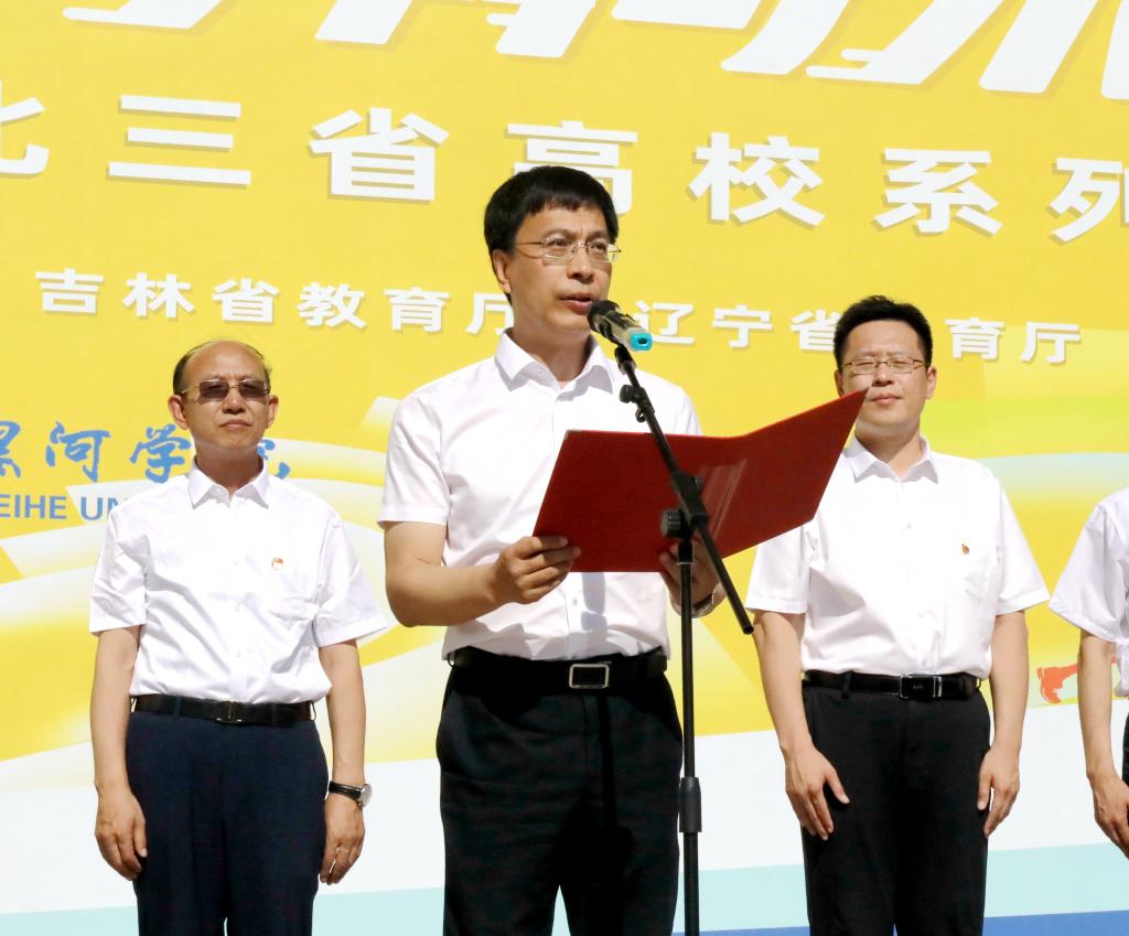 体育学院院长孙成业宣读活动规则;黑龙江省教育厅二级巡视员丁哲学点燃接力火炬;教师代表黄海为接力跑发令,标志着第七届中国国际“互联网+”大学生创新创业大赛东北三省“青年红色筑梦之旅”高校党史问答接力跑暨“我和我的信仰”东北三省高校系列活动正式启动。