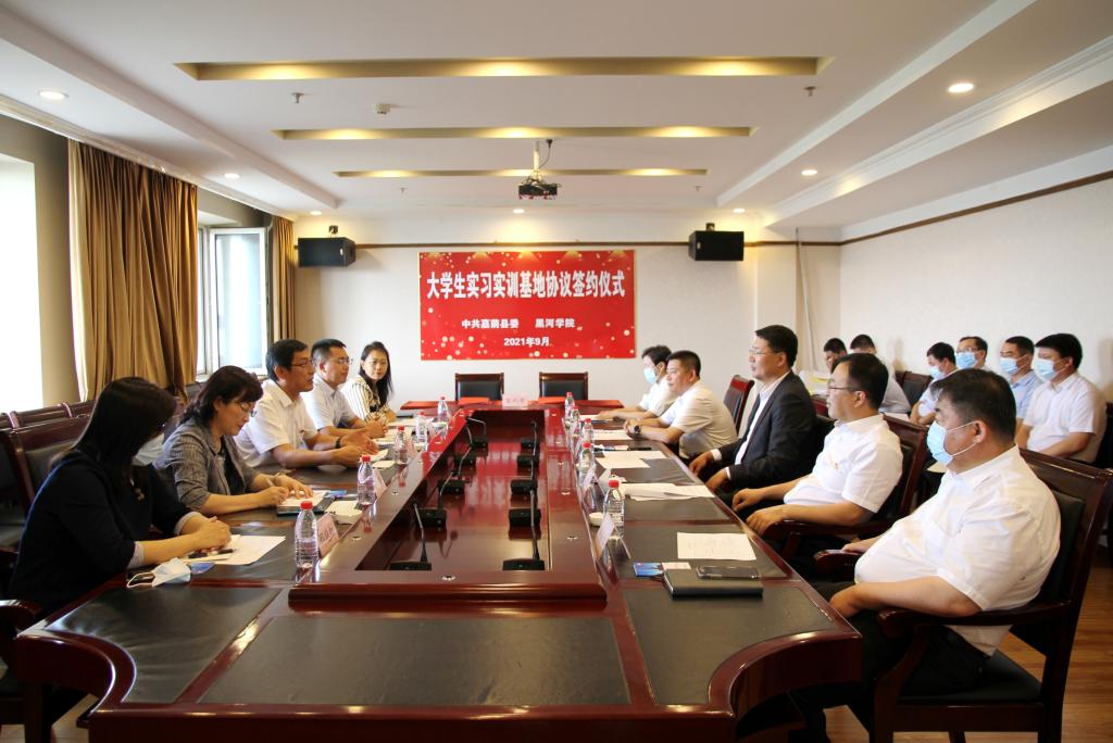 本网讯(特约记者 张璐 李光)9月6日,beat365官网与伊春市嘉荫县大学生实习实训合作签约仪式在嘉荫县举行。党委副书记、工会主席张焕强,党委委员、组织部部长安全义,嘉荫县委书记陈旭,县委副书记、政府县长李长江,县委常委、组织部部长张伟,县政府副县长刘忠伟、胡志玲,beat365官网文化旅游学院、教务处、继续教育学院相关负责人,人才工作领导小组成员单位主要负责同志参加签约仪式。签约仪式由政府县长李长江主持。