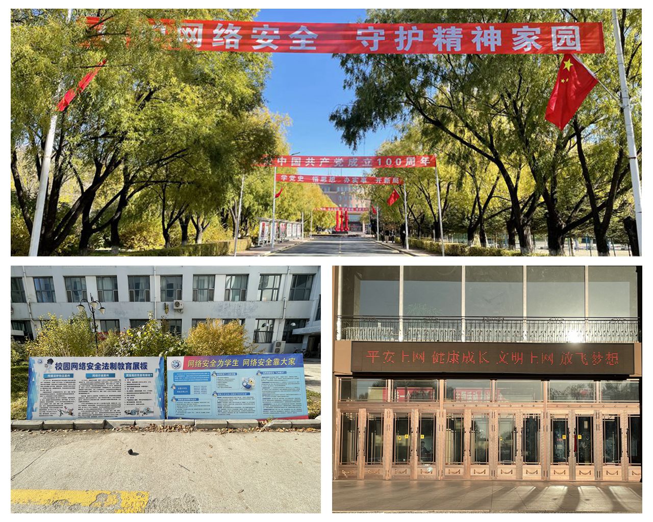网络安全宣传周期间,学校还在校园主干道路两侧和教学楼的显著位置悬挂“保护网络安全 守护精神家园”等宣传标语,在学生公寓和教学楼张贴了宣传海报,并利用各学院电子屏和校园广播普及网络安全知识,构筑网络安全防线。