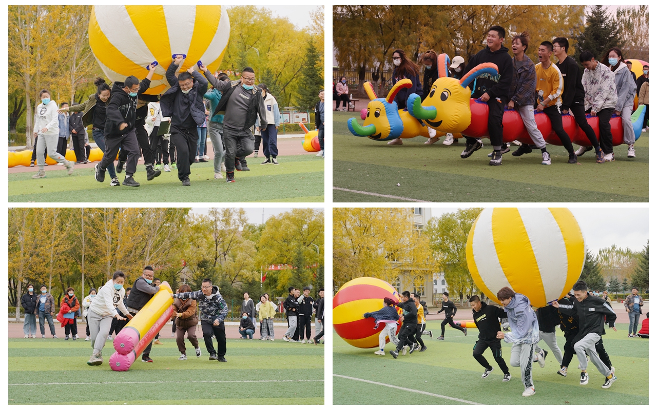 本次比赛采取“党史精神+趣味运动”的创新模式,紧紧围绕“学党史、悟思想、办实事、开新局”的目标要求,设立了“跨越新征程”——你追我赶、“奋进新时代”——众星捧月、“绘就新篇章”——大力士铅笔、“青春心向党”——运转乾坤4个项目,并在项目中设置了“党史知识竞答”环节,以“赛”促“学”,让师生们在轻松活泼的氛围中更加深刻掌握和领会党史知识及其意义。赛场上,参赛队员奋勇争先,斗志昂扬,相互协作;赛场下,啦啦队友鼓劲呐喊,此起彼伏,充分展示出了师生们超越自我、积极进取、团结拼搏的精神风貌。