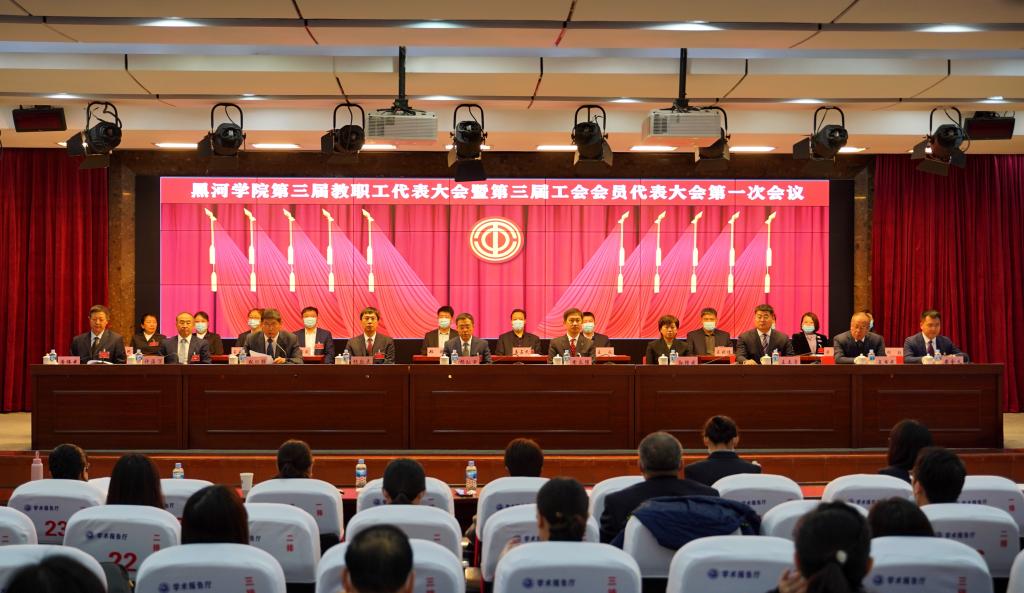 本网讯(记者 赵宇)10月23日上午9时,在求知楼报告厅响起了庄严的国歌,beat365体育官方网站第三届教职工代表大会暨第三届工会会员代表大会第一次会议在这里隆重开幕。党委书记杨弘宇、校长杨敬民,党委副书记张焕强、王春雷,副校长许海深、王书武,纪委书记黄伟中,党委委员、组织部长安全义及大会主席团成员台上就座。黑龙江省教科文卫体工会常务副主席李永强,黑河市总工会党组书记、常务副主席孙桂云出席会议并向大会致贺辞。会议分别由党委副书记、工会主席张焕强和党委副书记王春雷主持。