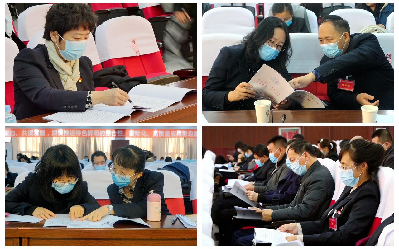校长杨敬民在报告中从贯彻党的教育方针、加强新时代党的建设、深化教育教学改革、加强专业内涵建设、深化产教融合、加强学科建设、深化校地合作、加强人才队伍建设、推进国际交流合作、推进“三全育人”、发挥文化育人作用、强化资源配置、提高服务管理效能等十三个方面对学校各项工作进行了回顾与总结,客观的指出了学校发展建设中存在的短板和不足,深入分析了学校面临的机遇和挑战,明确提出了“十四五”期间工作任务和目标。