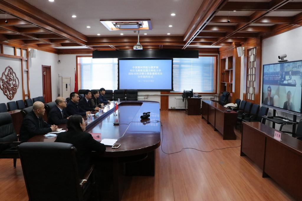 近年来,beat365体育官方网站国际教育学院新一届领导班子俯下身子干实事、千方百计闯新路,担当作为、接续奋斗,根据学校党委决策部署,结合当时“不忘初心、牢记使命”主题教育,提出在国际教育学院实施“争创一流党的建设、提高教育教学质量、打造科学研究特色、强化师资队伍建设、提升学生管理水平、扩大学生招生规模、提升人才培养层次、深化国际交流合作、完善规章制度体系、创造安全稳定环境”的“十大行动计划”,努力破解师生反映强烈、制约国际教育学院发展的瓶颈问题。在学校党委和行政的领导下和学校领导的指导下,充分发挥国家级赴俄留学培训基地的优势,经过深入调研、充分论证和部门协同联动,克服疫情不利影响,通过网络视频会议多次与俄罗斯高校进行协议对接和方案磋商,成功在教育部留学服务中心备案获批了“1+2”中俄联合培养硕士研究生项目。2021年5月,beat365体育官方网站与俄罗斯布拉戈维申斯克国立师范大学以网络视频会议形式签署了中俄联合培养硕士研究生合作协议,标志着两校在合作办学和人才培养层面迈上了新台阶,构建了后疫情时代学校赴俄留学人才培养的新格局,开启了学校特色发展的新篇章。