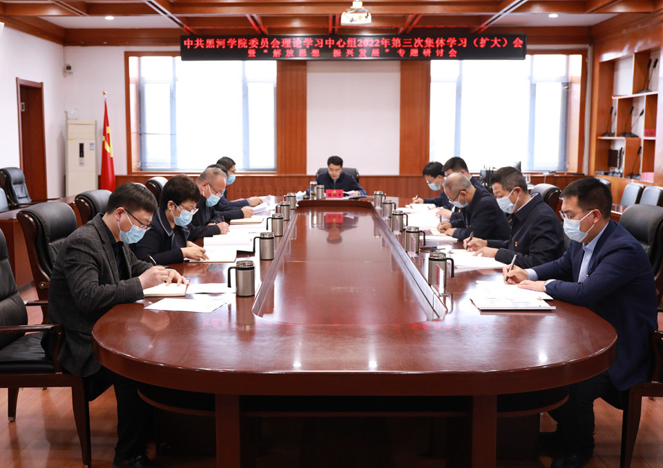 本网讯(记者 王静 葛莹莹)5月12日,党委书记杨弘宇在明德楼308会议室主持召开校党委理论学习中心组第三次集体学习(扩大)会暨“解放思想振兴发展”专题研讨会。学校党政领导班子成员参加会议。