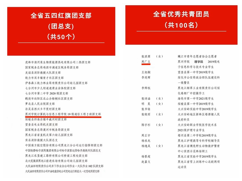 本网讯(特约记者 肖尧)近日,团省委印发《关于表彰全省五四红旗团委(团支部)、全省优秀共青团员、全省优秀共青团干部的决定》,beat365官网计算机与信息工程学院2019级通信工程2班团支部荣获“全省五四红旗团支部”称号,理学院2019级电子信息科学与技术专业周广玉同学荣获“全省优秀共青团员”称号。