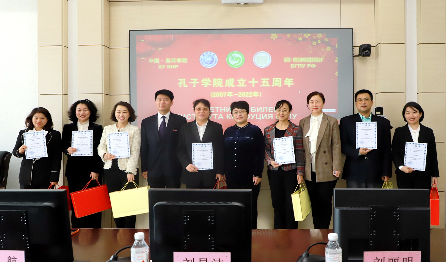 布拉戈维申斯克国立师范大学孔子学院于2007年5月15日创立,是我国在俄罗斯远东地区建立的第一所孔子学院。十五年来,孔子学院在籍学员由创建之初不足百人,现已增长到近400人,35个教学班,并在腾达市和布拉戈维申斯克市的第五中学、14中学、25中学、26中学和老年大学开设了五个汉语教学点,培训学员的年龄从中小学生到老年人,覆盖范围广泛,截至目前共累计培训学员超过50000人次,现已成为俄罗斯哈巴罗夫斯克领区民众学习汉语和了解中华文化的重要平台。2012年被评为“全球先进孔子学院”;2014年汉语教师张航荣获“全球最美汉语教师”荣誉称号;2021年哈巴管区参赛选手帕维尔·亚历山德罗维奇·阿尔希波夫在第二十届“汉语桥”世界大学生中文比赛全球总决赛上摘得欧洲冠军头衔;2021年荣获教育部中外语言交流合作中心、汉考国际授予的全球“2021年度汉语考试优秀考点”称号。