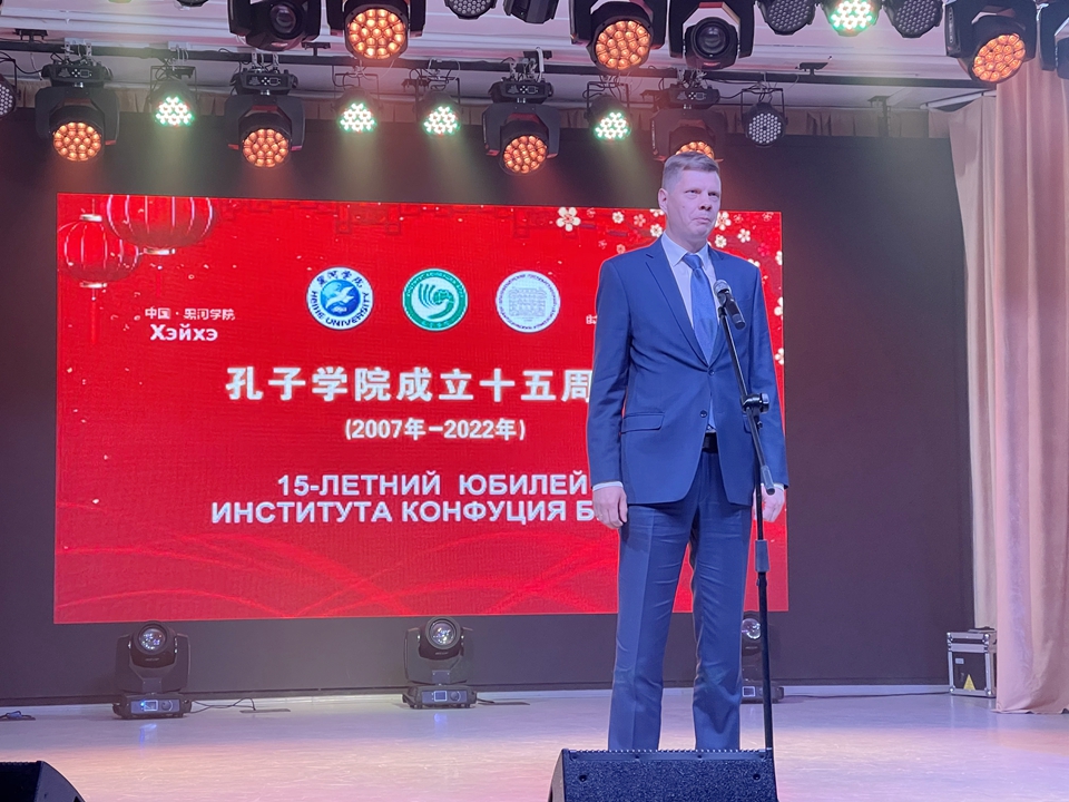 阿穆尔州政府副主席安德烈▪维塔利耶维奇▪久明在致辞中指出,布师大孔子学院成立15年来,在向俄罗斯民众传播中华文化、教授汉语等方面硕果累累,现已发展成为阿穆尔州人民学习汉语和了解中华文化的重要平台。越来越多孔院学员成为中俄友好的使者和外交官,为两国的政治、经济、文化交流添砖加瓦。希望孔子学院在中俄两国政府和民间的共同关心和支持下,通过双方专家学者的共同努力,在未来十五年取得更加辉煌的成绩,为增进中俄两国人文交流与合作、传承中俄友谊发展作出更大贡献。