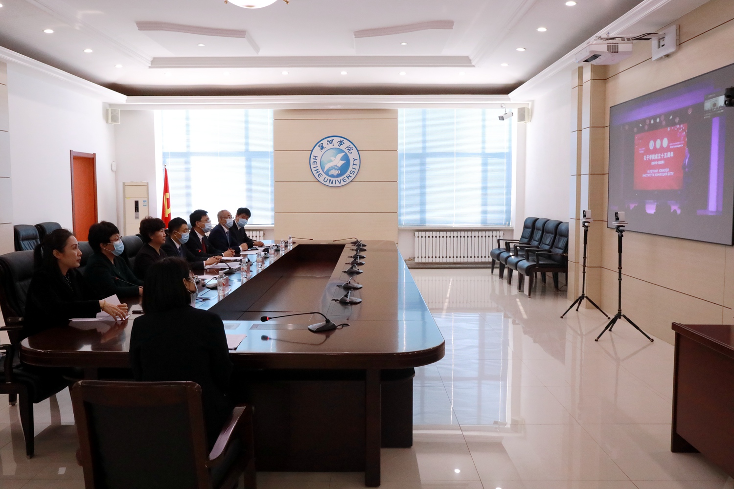 俄罗斯阿穆尔州政府副主席安德烈▪维塔利耶维奇▪久明、中华人民共和国驻哈巴罗夫斯克总领馆崔国杰总领事、阿穆尔州文化与民族政策部部长、外交部驻布市代表处代理代表、经济发展和对外联系部第一副部长、阿穆尔州教育和科学部第一副部长,布拉戈维申斯克市市长、副市长,布拉戈维申斯克国立师范大学校长现场出席活动并讲话;中国黑龙江省教育厅一级巡视员姜广福,黑河市人民政府副市长陈晓杰,学校党委书记杨弘宇,党委副书记、院长杨敬民,副院长许海深、谢慧及历任中方院长、曾经任教的教师、国际交流合作处全体工作人员分别在线上及beat365体育官方网站分会场参加庆典活动。