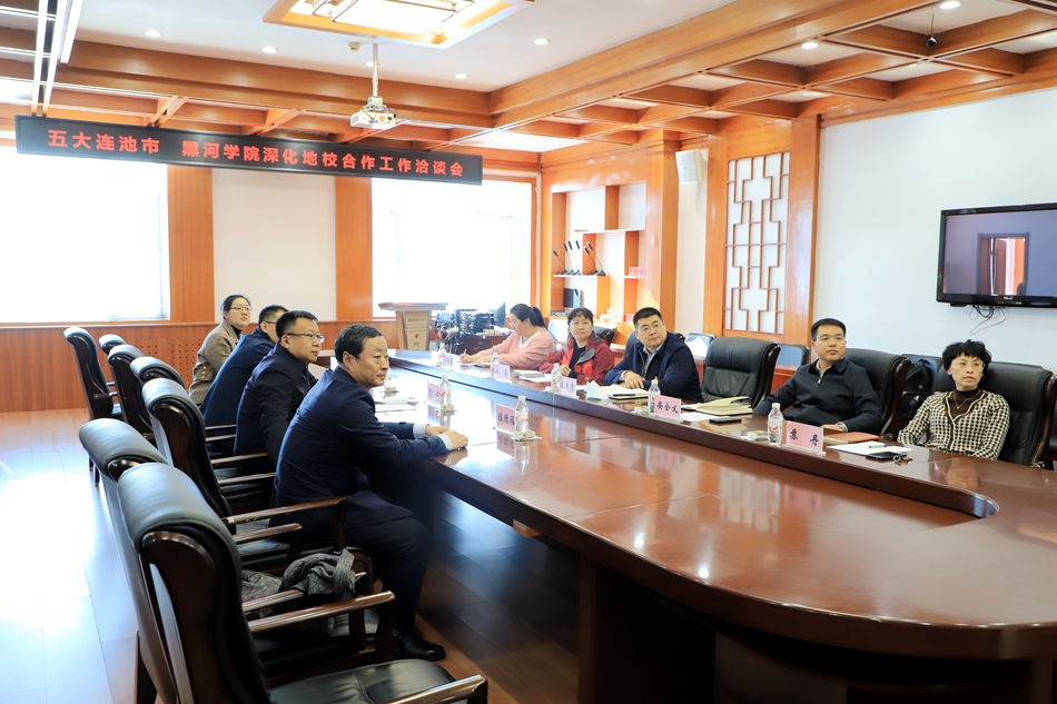 会上,双方共同观看了五大连池市人才工作专题片;介绍了各自基本情况,就如何谋划校地人才发展合作工作进行了深入交流与探讨,并达成了初步共识。双方表示,将不断加强顶层设计,积极建立长效常态合作机制,突出跟踪问效,通过探索成立校地合作人才工作专班,推动校地人才合作走深走实;将围绕优势发力,推动合作内容项目化、清单化,大幅提升校地合作的主动性、可行性,不断拓展校地合作、产教融合的广度和深度;将持续解放思想,全面打造互利共赢、开放协作、共同发展的人才生态,全力为高质量经济社会发展提供更多的人才支撑和智力支持。