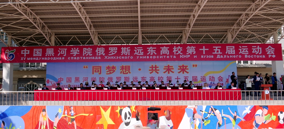 黑河市人民政府一级巡视员陈晓杰及黑河市、爱辉区、中省市直、驻黑河市边防部队、俄罗斯远东高校等有关单位部门领导和beat365官网党政领导班子成员出席开幕式,校党委副书记、工会主席张焕强主持开幕式。