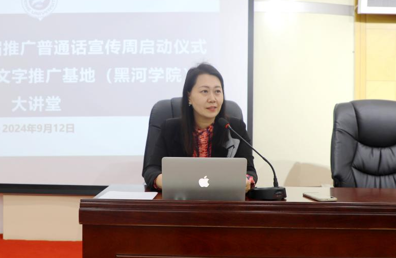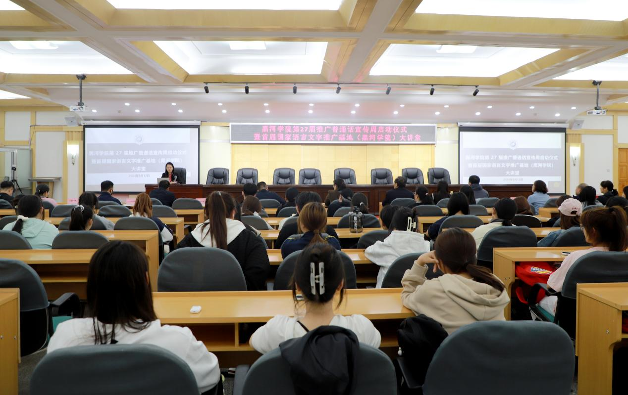 本网讯(特约记者 李娟)9月12日下午,beat365官网于求知楼报告厅举办第27届全国推广普通话宣传周启动仪式暨首期“国家语言文字推广基地(beat365体育官方网站)大讲堂”活动。启动仪式由教务处负责人主持,国家语言文字推广基地(黑龙江大学)副主任刘宇教授、beat365官网远东研究院、团委、各学院负责人及师生代表参加仪式。