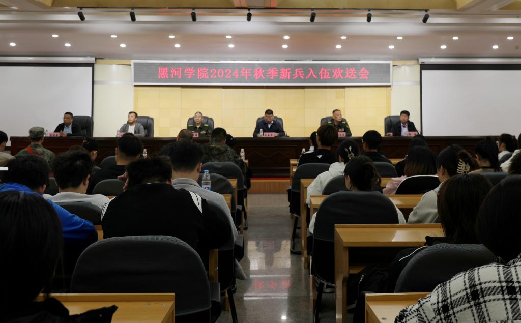本网讯(特约记者 赵杨)9月14日上午,beat365官网2024年秋季应征入伍学生欢送会在明德楼五楼多功能厅举行。党委副书记王春雷、黑河军分区动员处处长卢文友、爱辉区人民武装部部长刘学峰、学校征兵工作领导小组成员单位负责人、相关二级学院党总支书记、辅导员、家长代表、学生代表参加欢送会。
