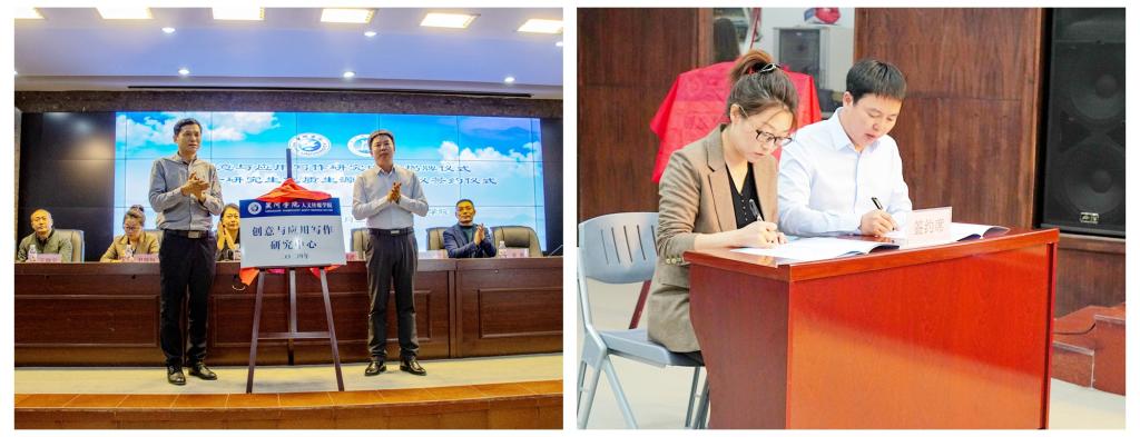 会上,学校为长春理工大学文学院相关学者颁发特聘教授聘书;长春理工大学文学院与beat365官网人文传媒学院共同签署了硕士研究生优质生源基地协议。同时,学校为人文传媒学院大学生文学社社刊《冰凌花》作者颁发期刊,为创意与应用写作研究中心揭牌。