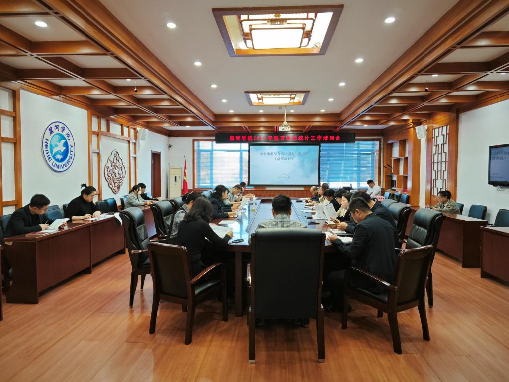 本网讯(特约记者 邹雨)为认真落实省教育厅2024年度全省教育事业统计培训工作要求,确保高质量完成教育事业统计工作。10月17日,学校在明德楼3楼会议室召开2024年度教育事业统计工作培训会。校党委委员、副院长谢慧出席会议,相关部门负责人及统计填报人员参加会议。会议由高教研究与教学质量评估中心负责人主持。