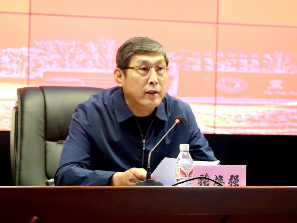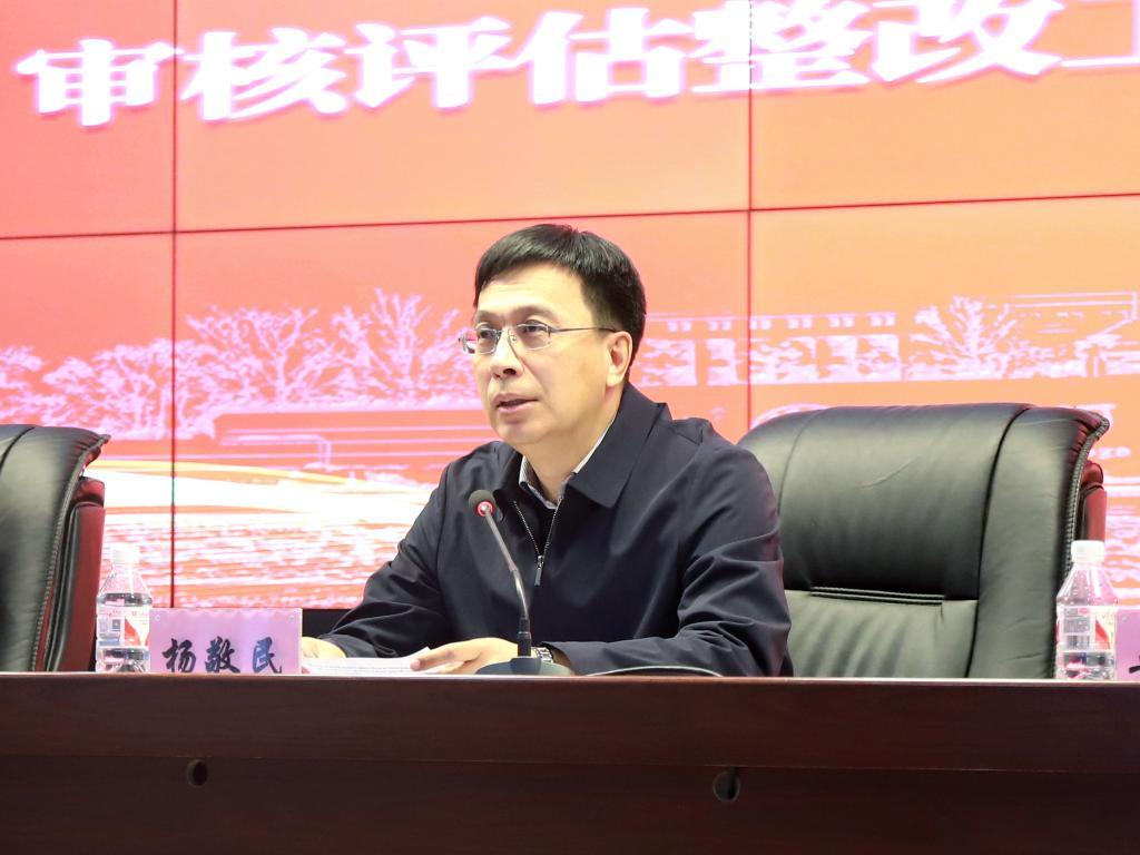 本网讯(记者 黄思翼)为进一步落实立德树人根本任务,强化人才培养中心地位,全面总结本科教育教学审核评估工作,对下一阶段的整改工作进行安排部署,10月23日下午,学校于求知楼报告厅召开本科教育教学审核评估总结暨整改工作部署会。校党委书记杨弘宇,校党委副书记、院长杨敬民,以及其他领导班子成员出席会议。学校各职能处室负责人,各学院班子成员,系主任,专业带头人,校督导专家以及教师、学生代表参加会议。会议由校党委副书记、工会主席张焕强主持。