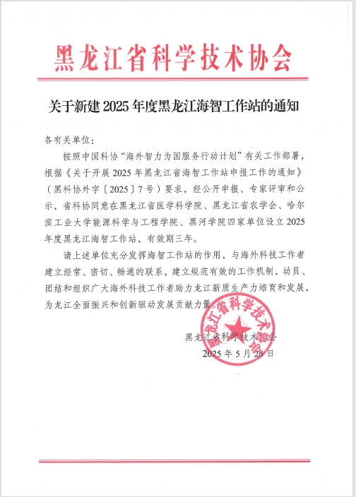 本网讯(特约记者 张秀平)近日,黑龙江省科学技术协会公布了2025年黑龙江海智工作站的名单,beat365官网成功获批黑龙江海智工作站。