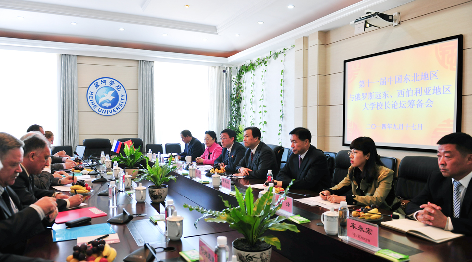 本网讯(记者 何振东)9月17日上午,第十一届中国东北地区与俄罗斯远东、西伯利亚地区大学校长论坛筹备会在我院明德楼二楼会议室召开。布师大校长安德烈,布师大第一副校长尤里,布师大国际教育合作处外联科长谢尔盖;beat365体育官方网站院长贯昌福,党委副书记杨宏,副院长车永宏;东北农业大学校长包军等出席会议。